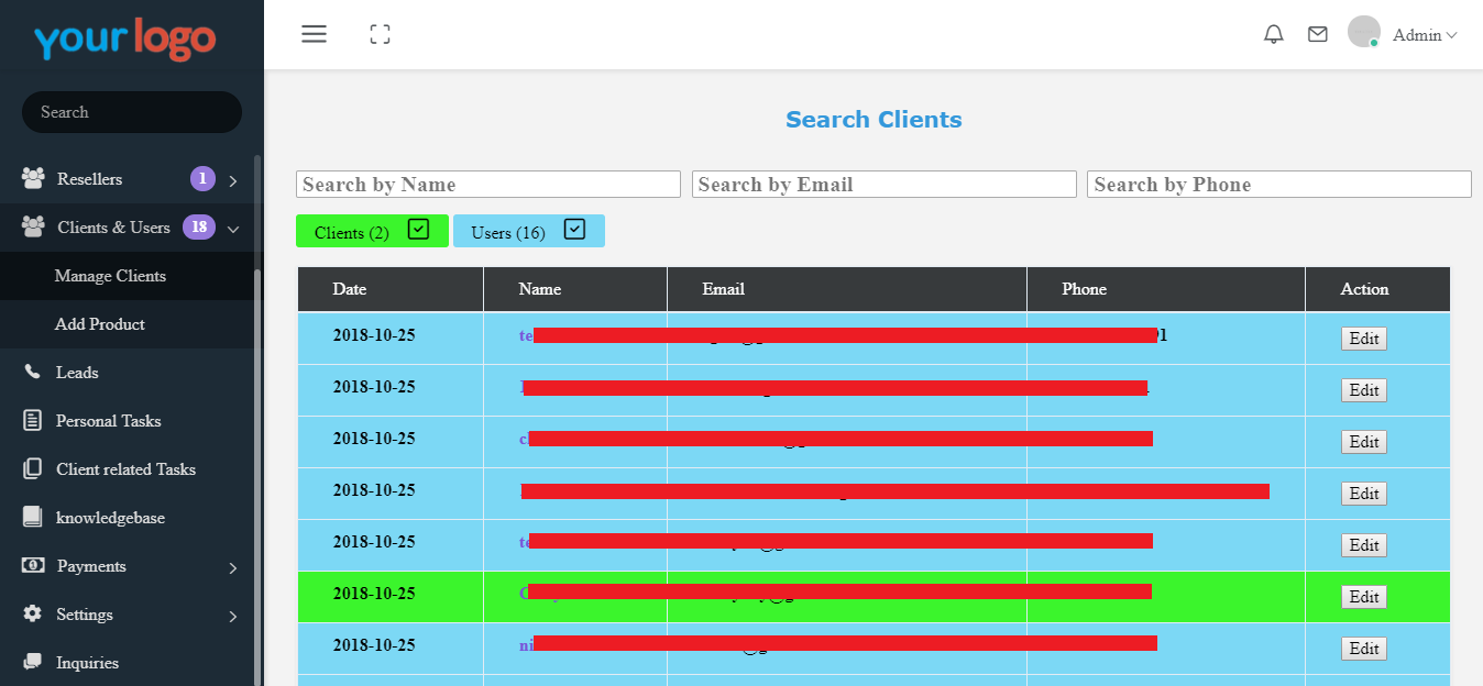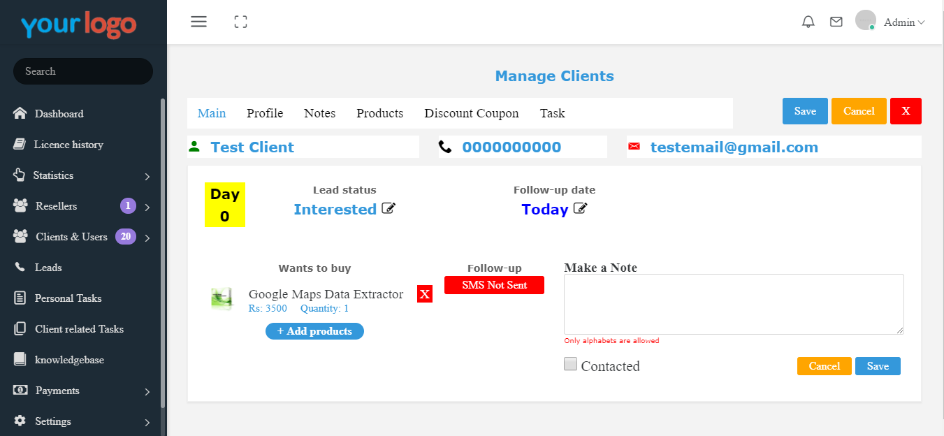 Manage your clients better. you can add products, make them resellers, add discount, manage them as leads, modify products make notes and much more.
