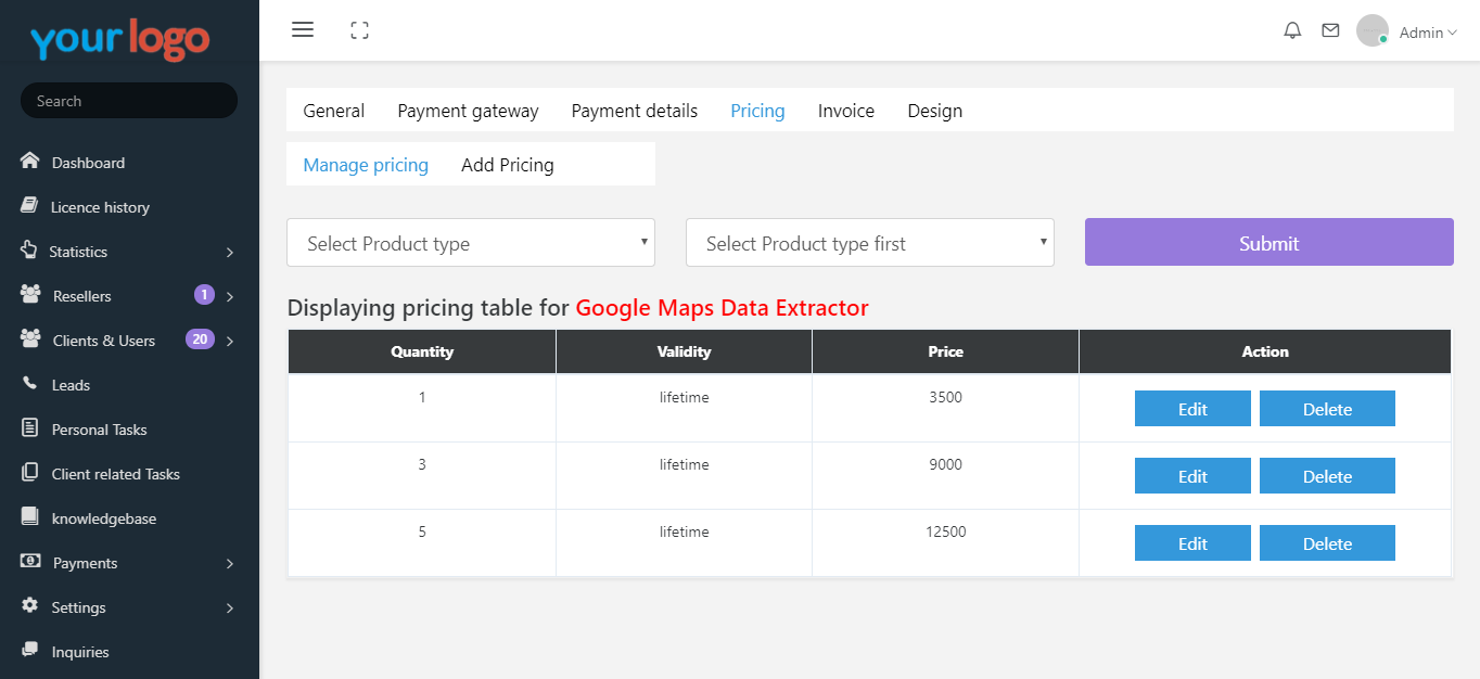 You will get unlimited software licences for any one software available on this website. you can sell them at any cost you wish to. You can change the prices on your website. Click to know more